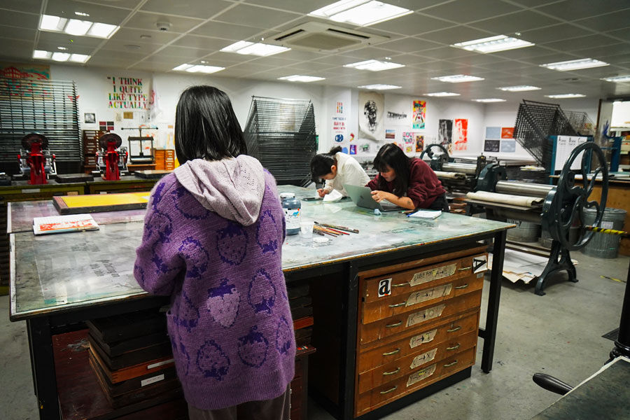 - Print room for lino printing, screenprinting, etching, hot foil pressing, letter pressing, bookbinding and more