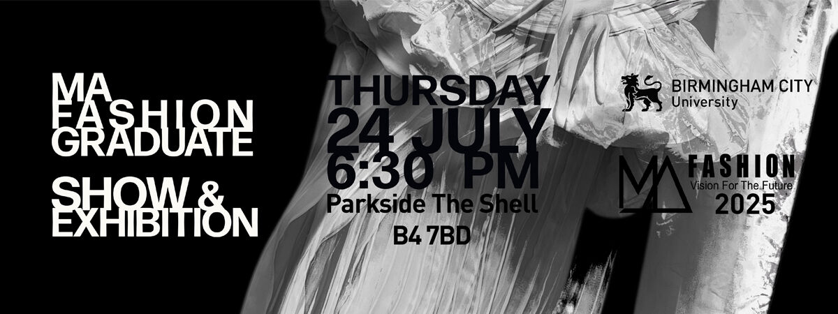 Join us for an unforgettable evening celebrating the next generation of fashion visionaries. The BCU MA Fashion Show 2025 spotlights our graduates’ boundary-pushing collections, shaped by identity, sustainability, activism and cultural memory.