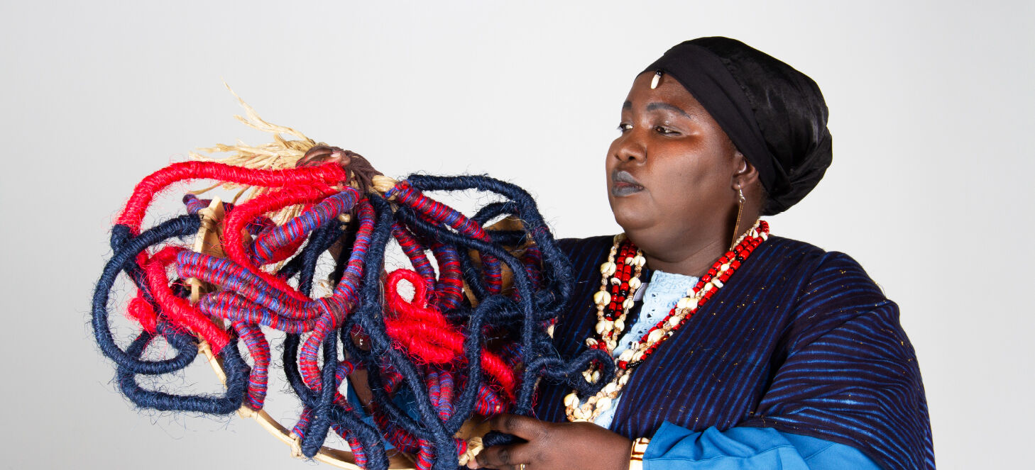 “My final major project is inspired by my mother Najankey Barrow and my connection to her. The pieces of artwork I have created narrate the story of her life, re-exploring the journey I shared with my mother, looking at what connects us, and her impact on the family and her community. The journeys taken by yarn, structure, texture and colour in this body of work, express the deep emotions held within this highly personal narrative. I welcome you to my mom...”