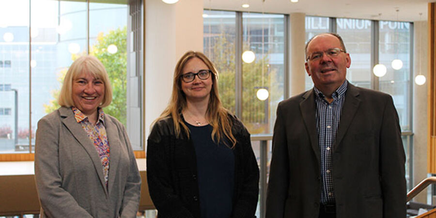 Pictured: (l-r) Vice Principal Professor Shirley Thompson, Dr Carrie Churnside, Principal Stephen Maddock.