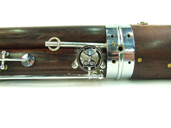 German silver boot. Linked B, C and D keys. C sharp and harmonic 1 key linked to. Wing joint and boot lined with ebonite.