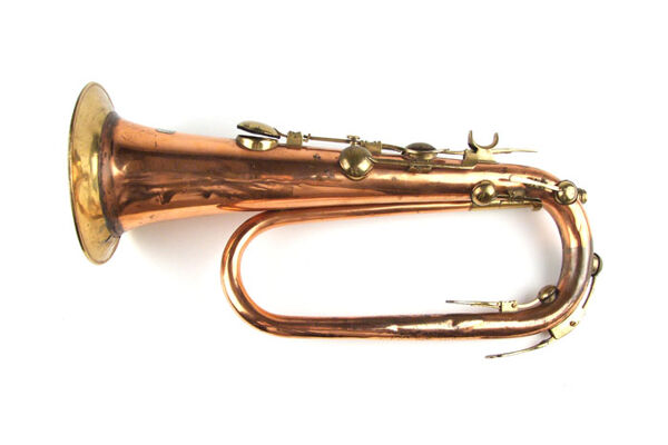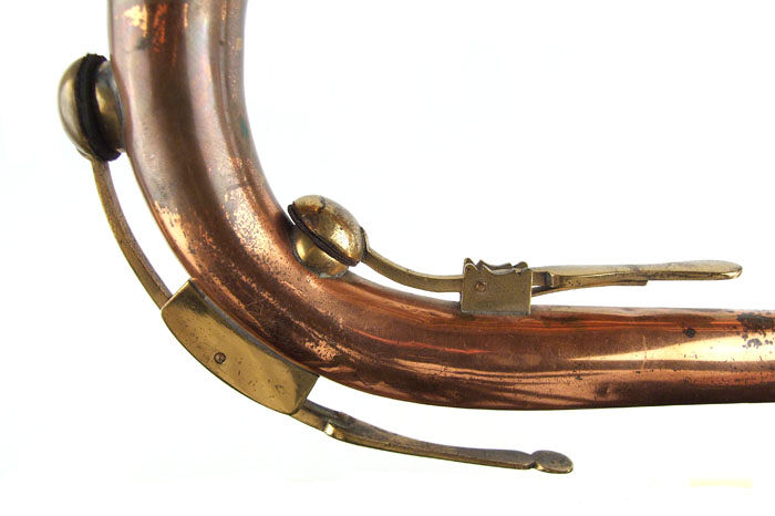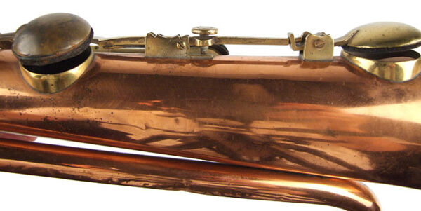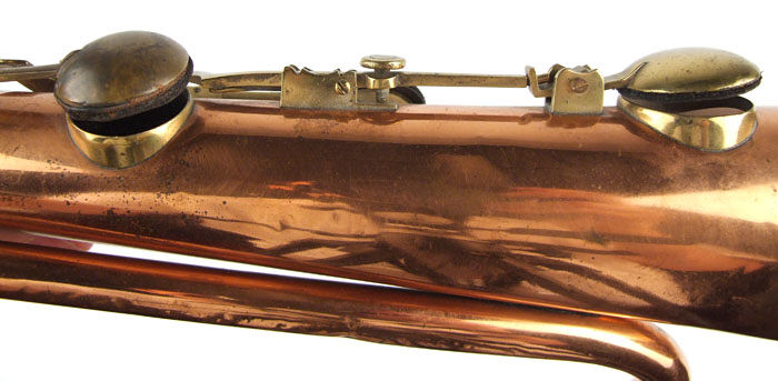 Technical description: Copper body with brass mouthpiece receiver, keys, key-hole chimneys, finger support and bell rim.