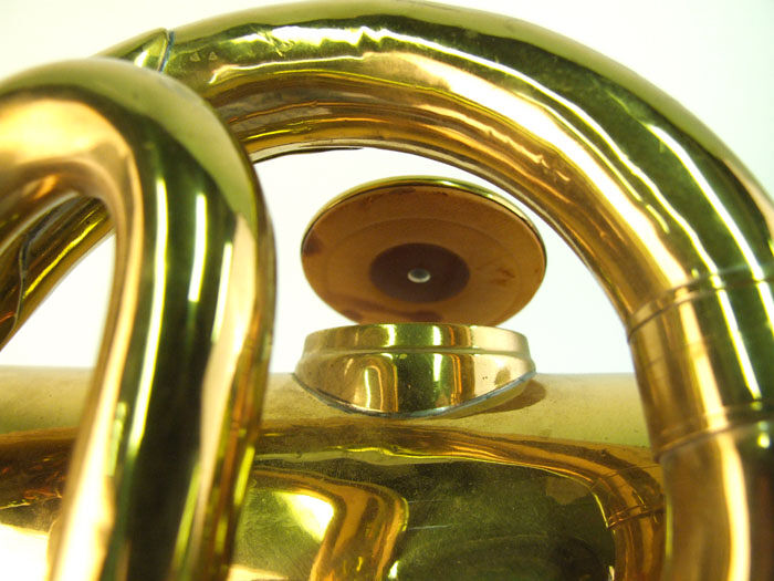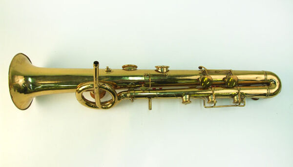 Mouthpiece receiver (a little old-fashioned for the time, being round rather than more rectangular) may not be original, as it looks like it has widened to accommodate a modern mouthpiece. It does not work with a known French Ophicleide mouthpiece.