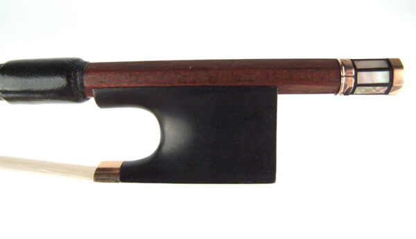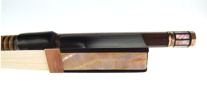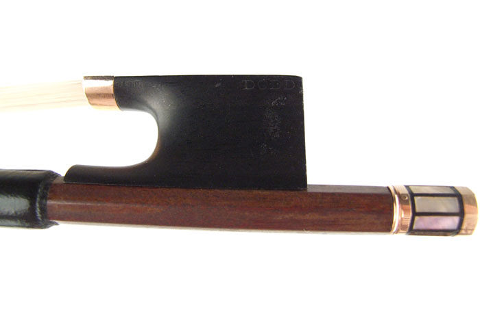 Technical description: Round stick, probably not by Dodd. Square ebony frog by Dodd (frog is typical of late John Dodd) with ormer pearl back-plate and slide.