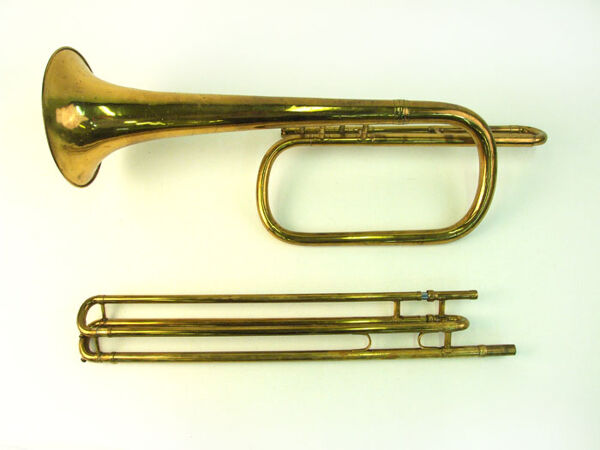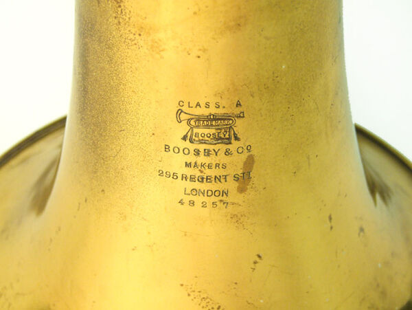 Inscription: Engraved on Bell: “CLASS A / [motif: bugle] TRADEMARK / BOOSEY / BOOSEY 7 CO / MAKERS / 295 REGENT STREET / LONDON”.