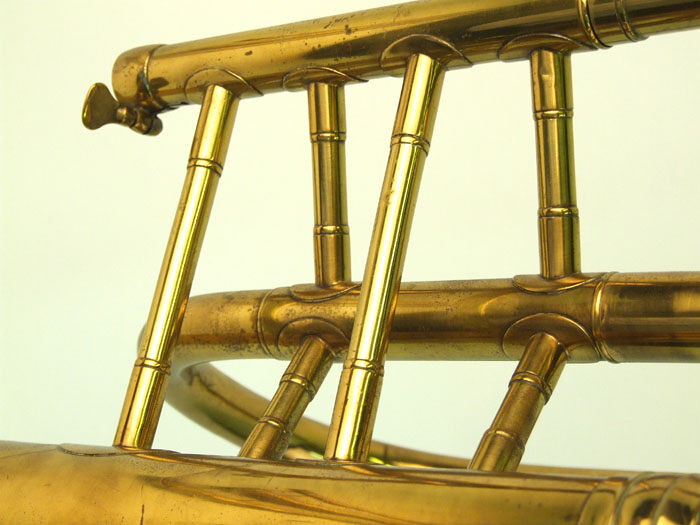 Technical description: New tuning slide made for B flat Nominal pitch. Double slide with gradated bore. First descending inner slide has been replaced.