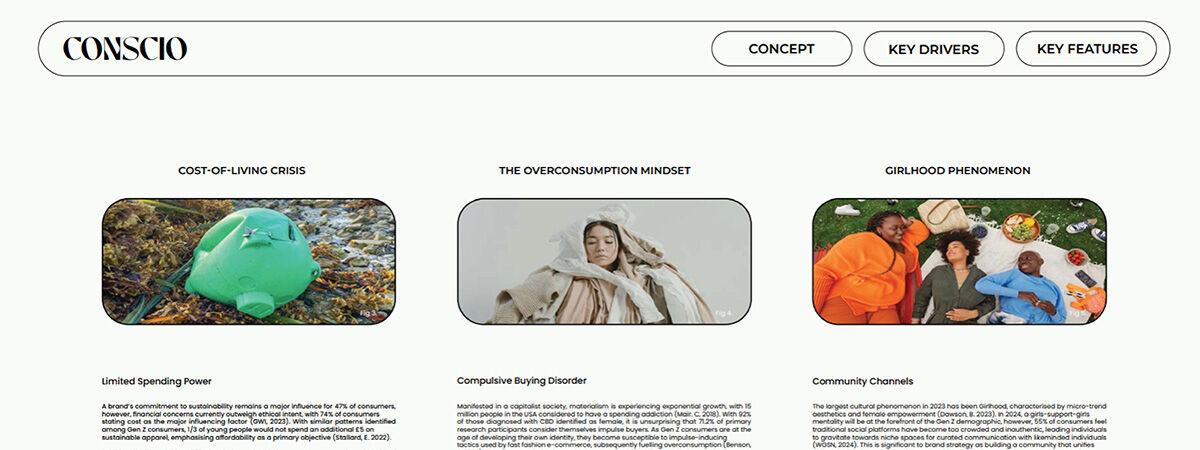 The project outcome should look beyond what is happening in industry now, to develop a concept that will be future ready, within a fashion or lifestyle sector. This will be grounded in research both primary and secondary, with industry insight and justification.