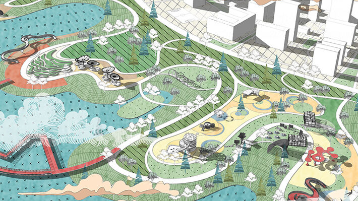 Looking at the sources of inspiration within the international subject of Landscape Architecture, the module provides a broad introduction for you to begin to engage with the dynamics of a structured design process. Focus on each of the core principles will allow you to develop overall structural understanding of the subject, as well as the fundamental academic and design skill sets that will be required through the course and your future career, be that in Landscape Architecture, or a related field.