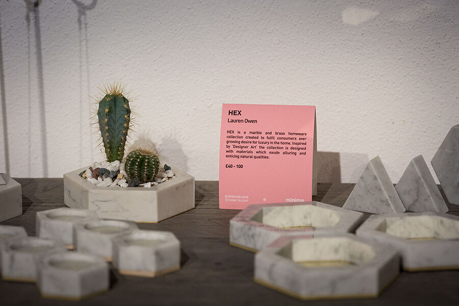 Final year BA (Hons) Product and Furniture Design students recently exhibited and sold their work at Minima; one of Birmingham’s key contemporary design showrooms. The fifteen selected students work in the collection included table-top products, desk and pendant lighting designs, furniture and homewares.