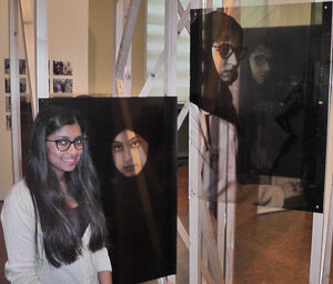 “I’ve used black and white photography set on a clear acetate background because I wanted to make a point about the hijab and transparency,” she says.