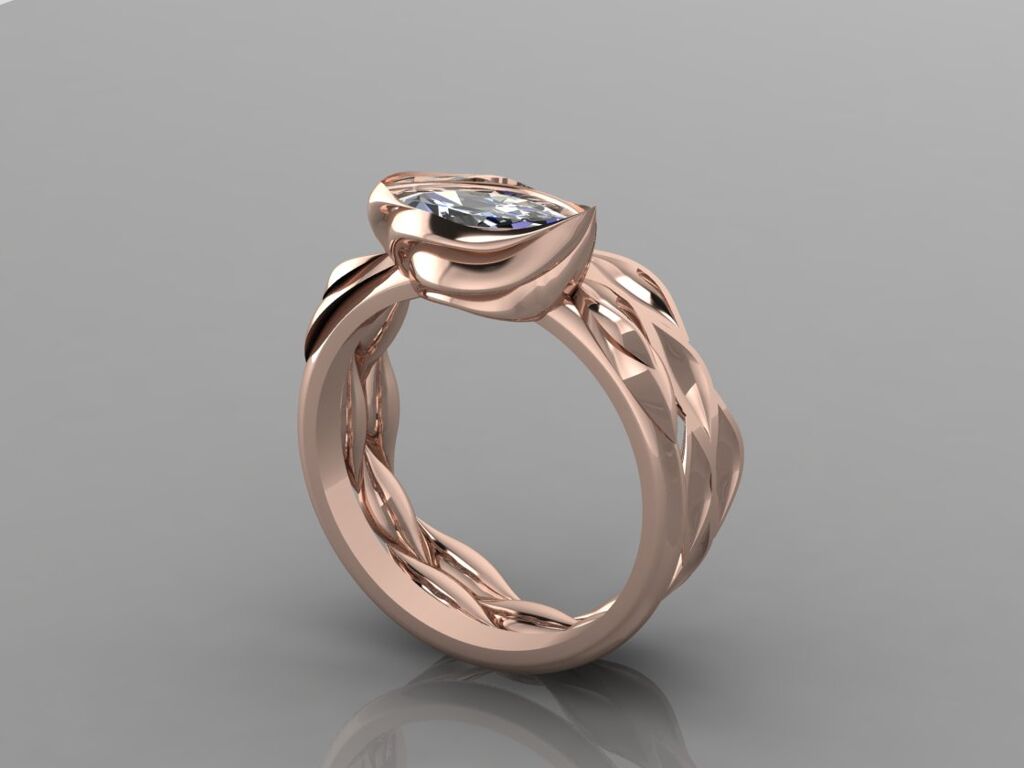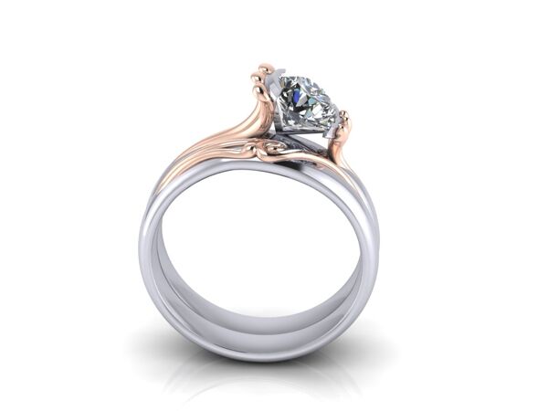 Two more HND Jewellery and Silversmithing students, Mahroz Mirzahekmati and Katie Shirt were named finalists for their designs. Mahroz’s more traditional design, ‘Unconditional’ introduces intricate and flowing rose gold details to add interest to the white shanks. ‘Florence’ by Katie draws its inspiration from the most romantic city in the world and features a pear-shaped diamond in an intricate raised setting. Both finalists received cash prizes.