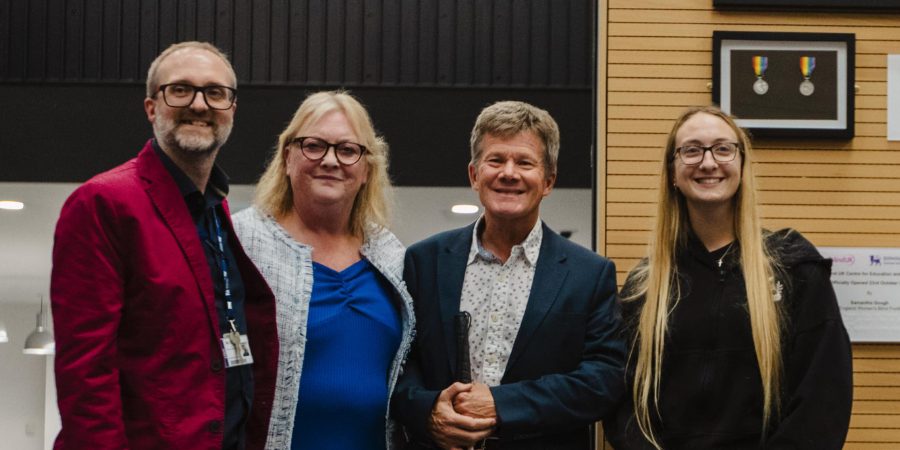 Pictured: Dr Peter Simcock, Nikki Morris, Robert Nolan (Chair of Deafblind UK) and Samatha Gough.