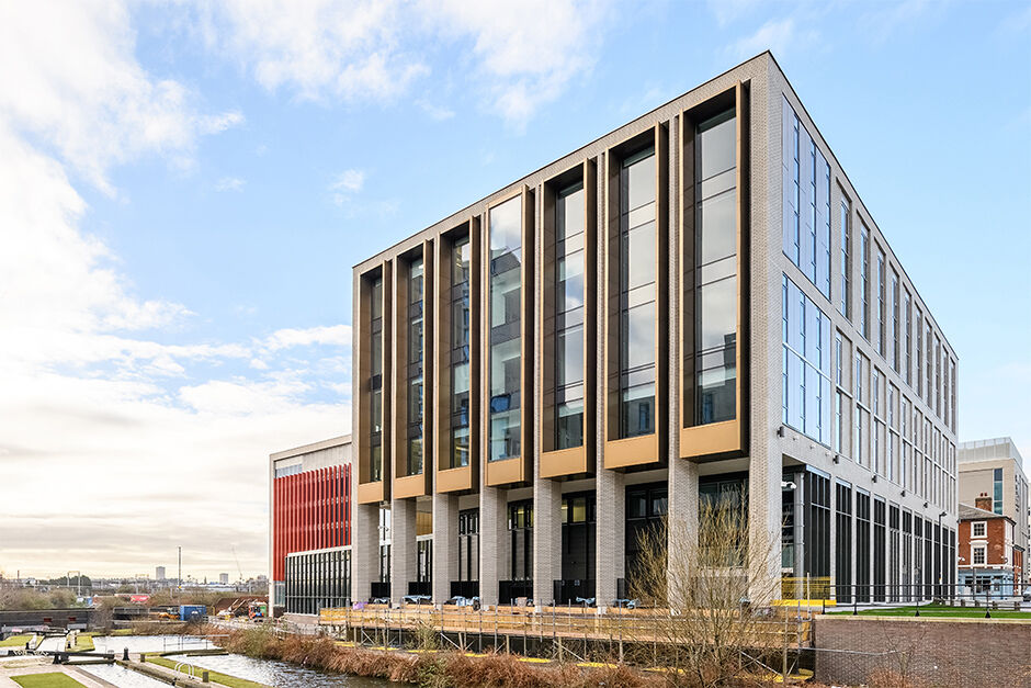Designed by Birmingham-based Associated Architects and constructed by Willmott Dixon, the building will assist in catering for the needs of the institution’s growing student numbers. The canalside development encompasses two sections of six and storeys respectively, with elevated external amenity space.