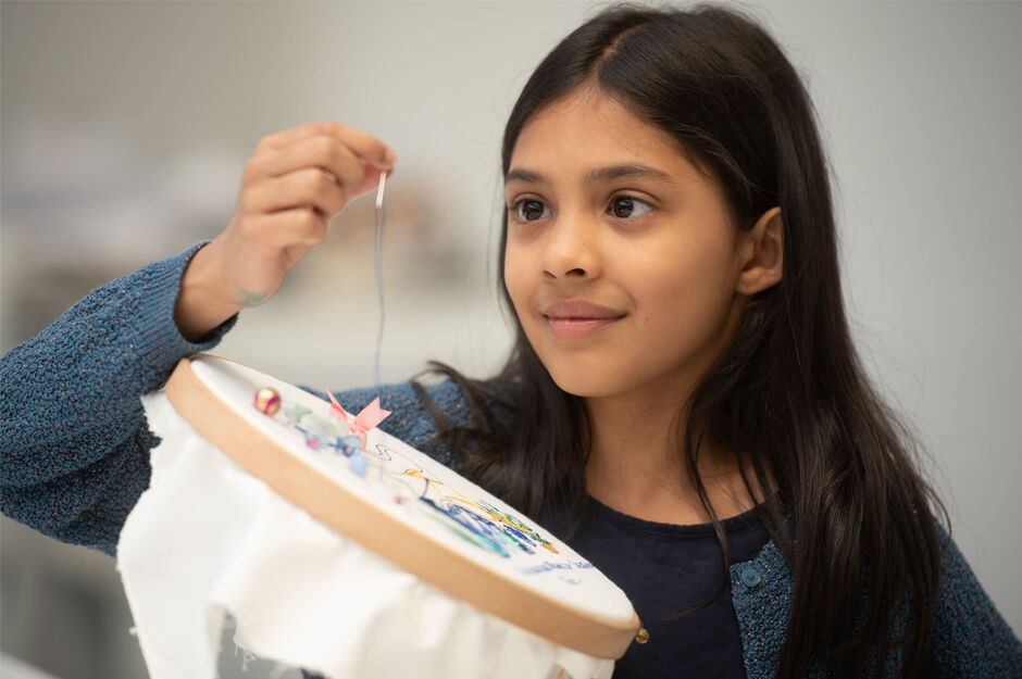 The annual event featured opportunities for attendees to create their own jewellery, transform waste fabric into woven wall hangings and turn scrap beads and sequins into embroidery panels.