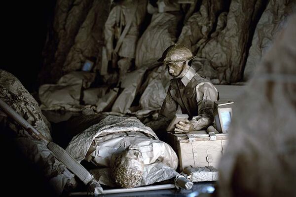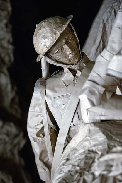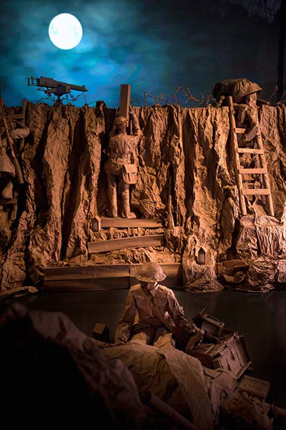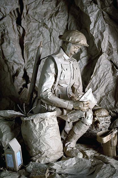 Life-size trenches, poor outdoor sleeping quarters and injured soldiers are some of the sets that have been created out of brown paper, which give a touching snapshot into a ‘typical’ day on the battlefield during World War One.