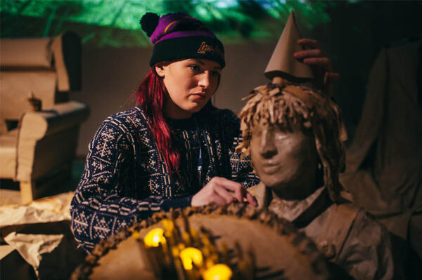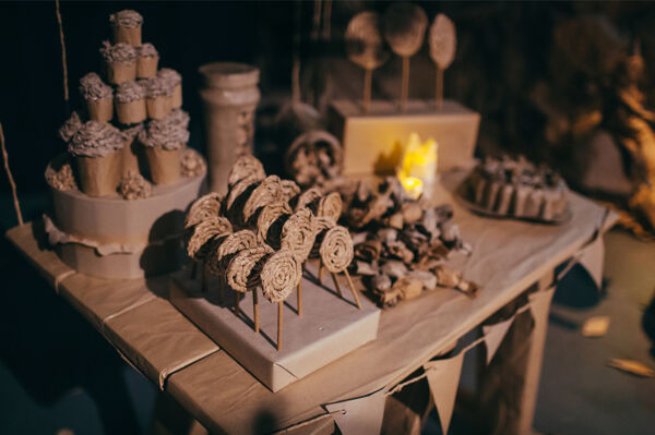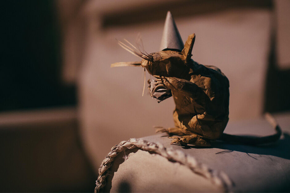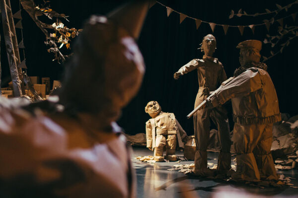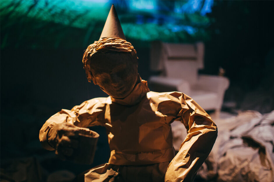 The installation, which is made up of a set and characters constructed entirely from brown paper and cardboard, will be on display at Birmingham City University’s Parkside building until February 20.