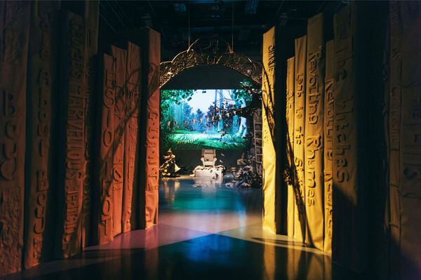 The installation concept was designed completely by the students and is lit with specialised set lighting and includes a backdrop replicating the look and sound of giants from the BFG walking through the woods.