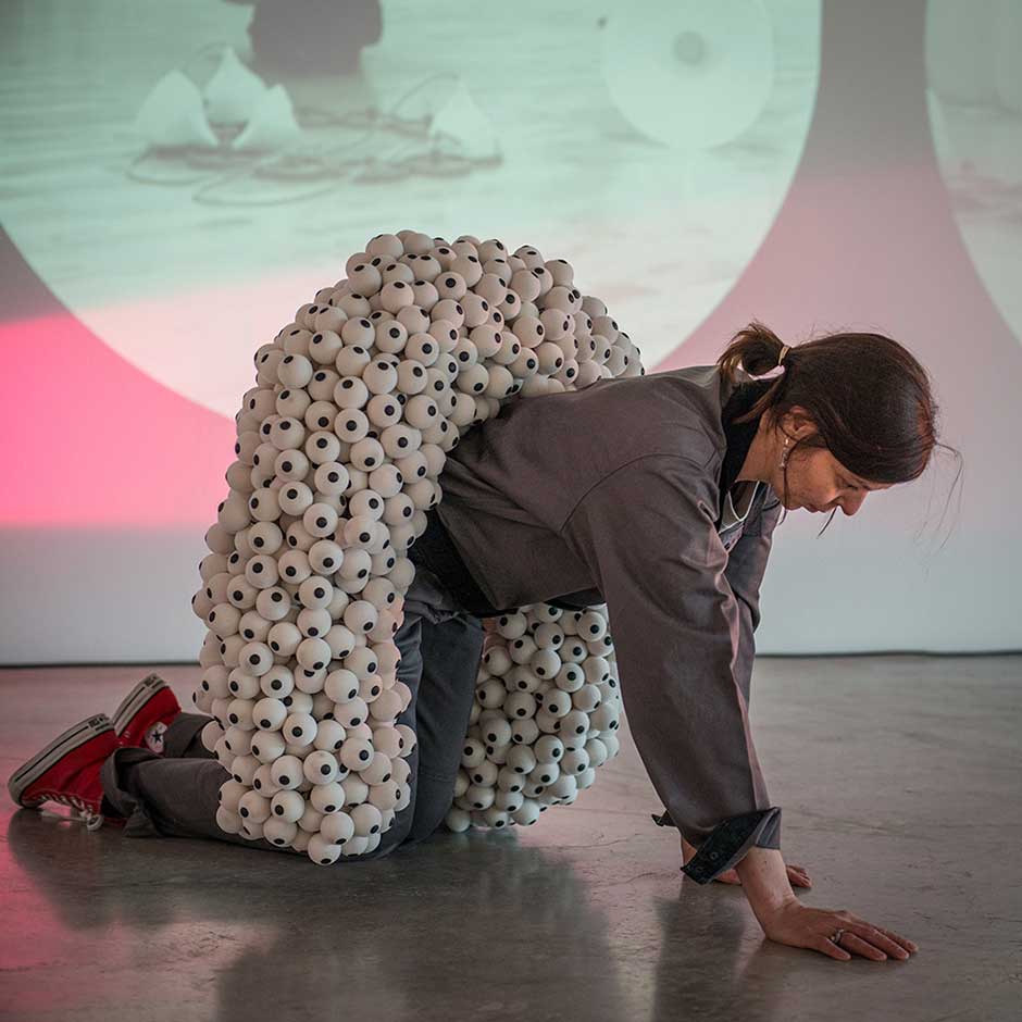 The resulting jewellery is theatrical in scale and responds to kinaesthetic sensations in which the tactility, sensuality and physicality of the objects is important. She experiments on the edges of the discipline and enjoys working collaboratively, which can be seen in her most recent work.