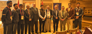 Pictured: Athletes, coaching staff, members of the Consulate General India (CGI), Vice-Chancellor Professor Phillip Plowden, Deputy Vice-Chancellor Professor Julian Beer and Director of Sport and Physical Activity Mark Jeffreys.